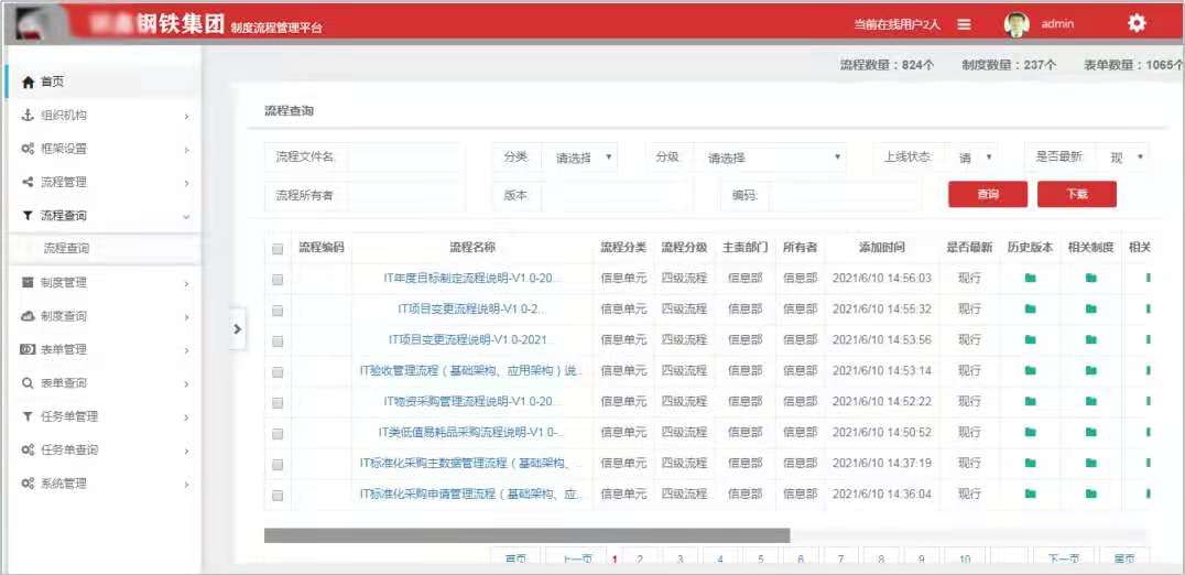 2、實(shí)現(xiàn)全部流程在信息系統(tǒng)內(nèi)的發(fā)布、查看、使用、更新,以及與其他管理文件的關(guān)聯(lián);