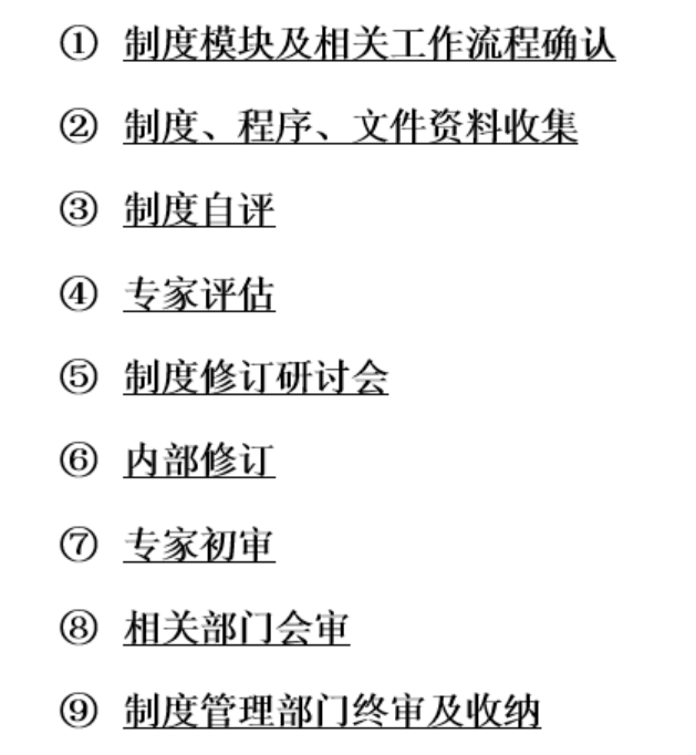 5、在《制度管理大數(shù)據(jù)系統(tǒng)》的支持之下,采用“制度優(yōu)化九步法”完成制度的資料搜集、優(yōu)化與評審工作;