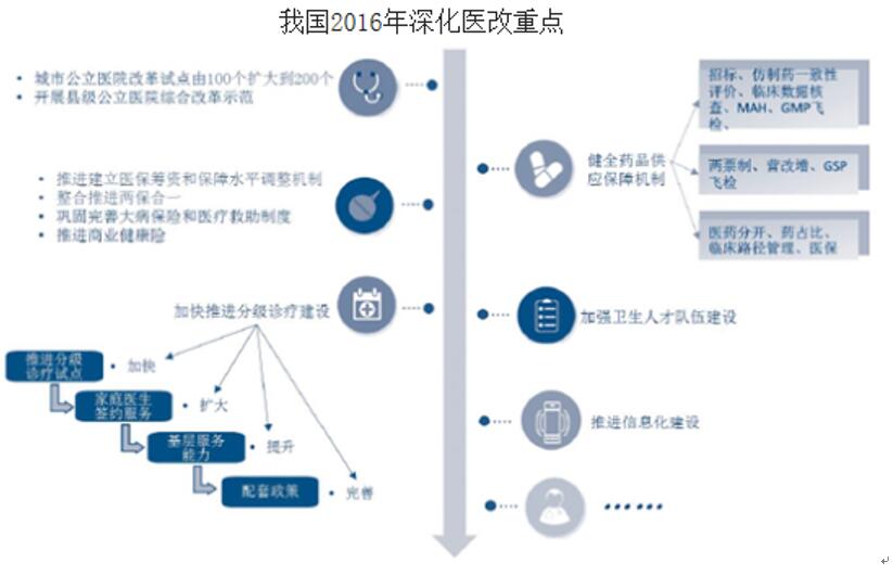 我國《“十三五”規(guī)劃綱要》明確指出要從全面深化醫(yī)藥衛(wèi)生體制改革、健全全民醫(yī)療保障體系、加強重大疾病防治和基本公共衛(wèi)生服務、加強婦幼衛(wèi)生保健及生育服務、完善醫(yī)療服務體系、促進中醫(yī)藥傳承與發(fā)展等八個方面全面推進健康中國建設,其中醫(yī)改是滿足健康需求的根本性手段。