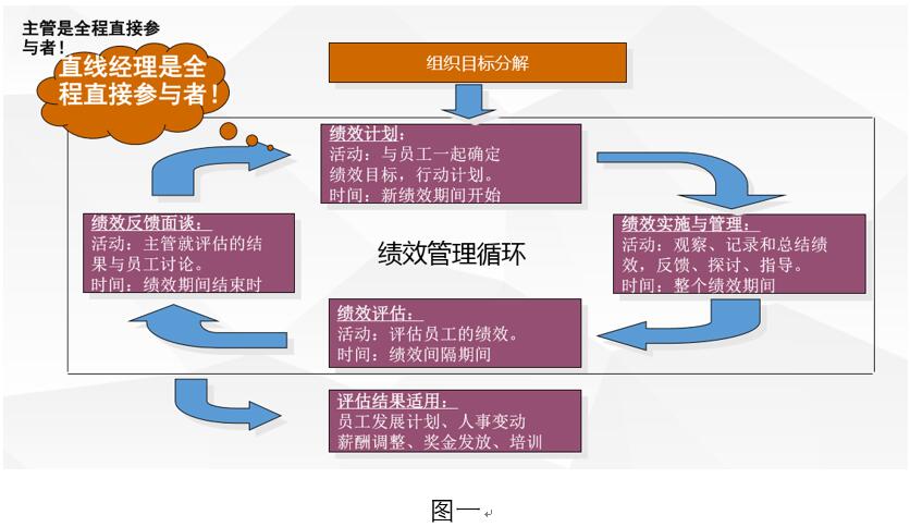 所謂績(jī)效管理,是指各級(jí)管理者和員工為了達(dá)到組織目標(biāo)共同參與的績(jī)效計(jì)劃制定、績(jī)效輔導(dǎo)溝通、績(jī)效考核評(píng)價(jià)、績(jī)效結(jié)果應(yīng)用、績(jī)效目標(biāo)提升的持續(xù)循環(huán)過程,績(jī)效管理的目的是持續(xù)提升個(gè)人、部門和組織的績(jī)效。