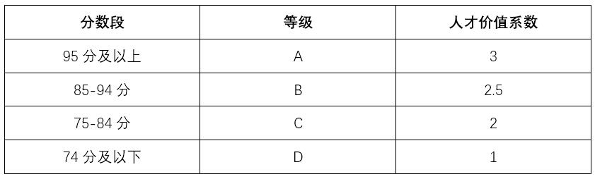 關于人才價值的評價標準,企業(yè)可以根據本企業(yè)的情況具體制定,激對象的學歷、工作能力、其工作的重要性等都可以作為評價依據。然后根據評分結果賦予其人才價值系數,如表3-2: