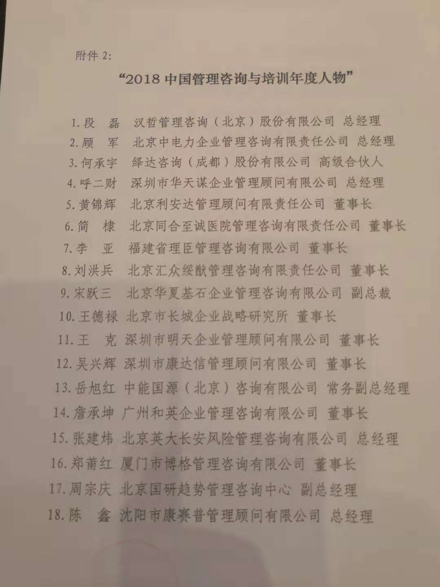 漢哲咨詢首席專家段磊博士,榮獲2018中國(guó)管理咨詢與培訓(xùn)年度人物,且名列榜首。