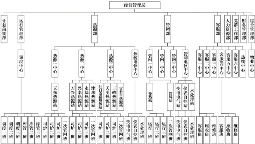 公司設(shè)有十一個處室、一個用戶服務(wù)中心、七個車間、六個運營所,員工420人。