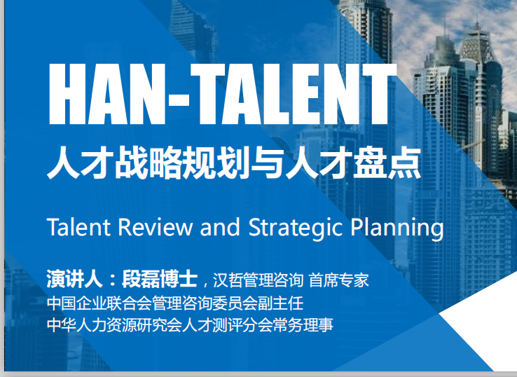 漢哲是國內(nèi)最早開展任職資格標(biāo)準(zhǔn)開發(fā)、能力素質(zhì)建模與人才盤點(diǎn)的服務(wù)機(jī)構(gòu),技術(shù)、方法已經(jīng)非常成熟并有幸服務(wù)于宇通客車、大族激光、金螳螂、中國空間技術(shù)研究院等各行各業(yè)的知名企業(yè),覆蓋企業(yè)員工數(shù)百萬人。結(jié)合漢哲咨詢在人才盤點(diǎn)領(lǐng)域的服務(wù)經(jīng)驗(yàn)及研究積累,段博士就人才盤點(diǎn)的思路、工具和方法進(jìn)行了分享。