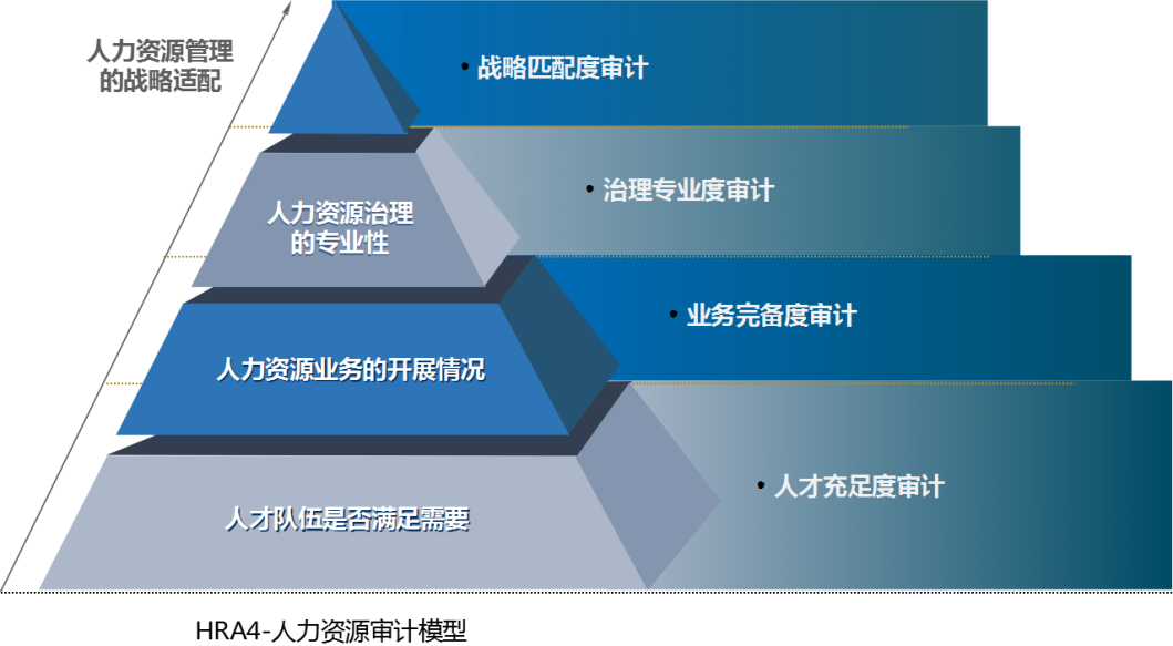 人力資源四維審計(jì),是從人力資源及管理的“戰(zhàn)略匹配度審計(jì)”、“治理專業(yè)度審計(jì)”、“業(yè)務(wù)完備度審計(jì)”、“人才充足度審計(jì)”四個(gè)維度對人力資源管理工作的狀態(tài)進(jìn)行審計(jì)和評估。