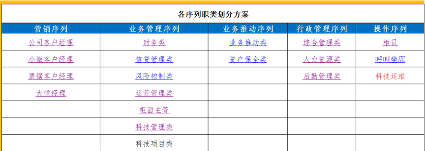 崗位序列劃分與員工發(fā)展通道設(shè)計(jì):此兩項(xiàng)內(nèi)容主要問(wèn)題點(diǎn)在于薪酬模式與薪酬現(xiàn)狀的對(duì)應(yīng)性,要基于商業(yè)銀行的現(xiàn)狀及薪酬未來(lái)設(shè)想,同時(shí)借鑒其他同業(yè)的普遍做法和差異化經(jīng)驗(yàn)進(jìn)行思考和設(shè)計(jì)。