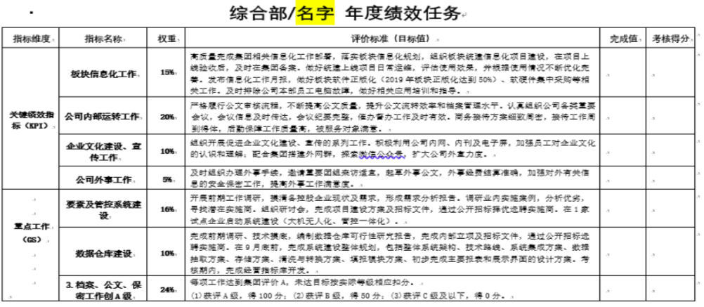 設計績效考核方式和考核機制,結(jié)合集團考核方式,根據(jù)部門的崗位職責,設計不同層級的考核指標,并實現(xiàn)績效與薪酬的聯(lián)動機制。