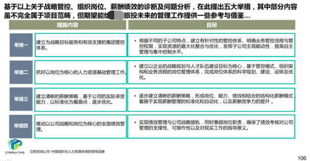 項目啟動后,項目組通過深度訪談、問卷調(diào)查、資料收集、外部分析四個方面對集團現(xiàn)狀進行全面診斷,發(fā)現(xiàn)目前存在的問題并提出四大核心舉措,明確改進思路。