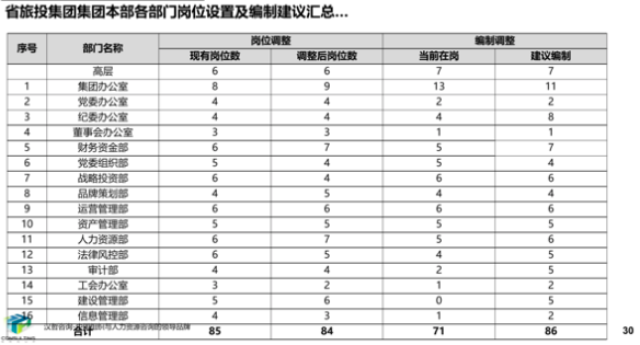 2、優(yōu)化集團及子公司的組織崗位。根據(jù)集團戰(zhàn)略發(fā)展方向和子公司業(yè)務側重、未來發(fā)展預期,對集團及子公司部門設置、部門職能模塊選擇進行了優(yōu)化和調(diào)整,并根據(jù)集團及子公司組織架構的調(diào)整對各部門崗位設置、職能、編制進行了優(yōu)化,形成了較為合理、科學的組織崗位設置、部門職能匯編以及崗位說明書匯編。