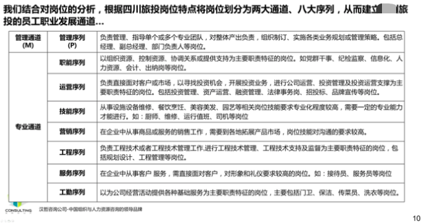 3、優(yōu)化職業(yè)發(fā)展通道。根據(jù)集團人才發(fā)展現(xiàn)狀、現(xiàn)有職業(yè)發(fā)展通道情況以及人崗匹配程度,建立崗位入職標準,對現(xiàn)有人員崗位能力進行分析匹配,并設計管理和專業(yè)雙通道,建立配套的評價機制和人才培養(yǎng)機制,提高人崗匹配程度以及人才市場化程度,進而加強集團的市場化競爭水平。
