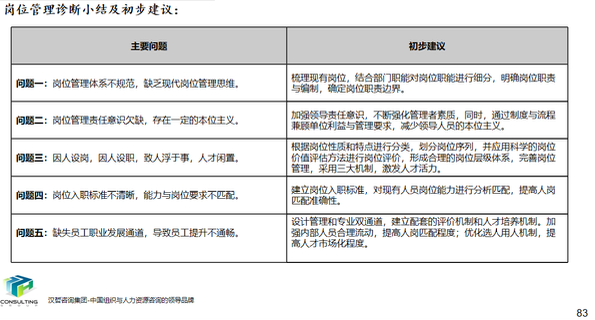 項(xiàng)目啟動(dòng)之初,通過內(nèi)部資料研究、企業(yè)深度訪談、員工調(diào)查問卷、外部標(biāo)桿資料對(duì)比,政策研究等維度對(duì)集團(tuán)發(fā)展戰(zhàn)略、集團(tuán)管控、組織流程、崗位體系、薪酬體系及績效管理系統(tǒng)進(jìn)行了全面診斷,發(fā)現(xiàn)問題并提出改進(jìn)的思路。
