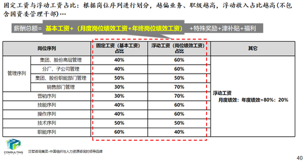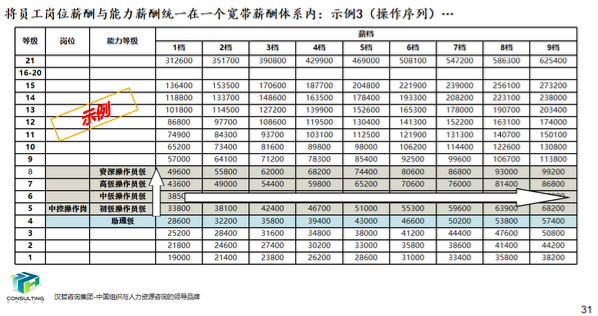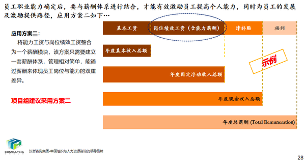 在集團(tuán)薪酬設(shè)計(jì)中,結(jié)合客戶要將崗位價(jià)值與員工能力結(jié)合并應(yīng)用于薪酬的要求,重新構(gòu)建了適用于客戶現(xiàn)狀的新的薪酬體系架構(gòu)。同時(shí),對(duì)于對(duì)薪酬要素、薪酬結(jié)構(gòu)、薪酬水平,調(diào)薪標(biāo)準(zhǔn)等一系列內(nèi)容進(jìn)行了細(xì)化設(shè)計(jì);