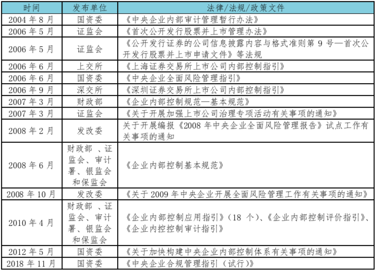 以上便是我們所熟知的“一規(guī)范三指引”,并且在國有企業(yè)內(nèi)控體系建設(shè)及評價,外部審計機(jī)構(gòu)審計中被廣泛引用。