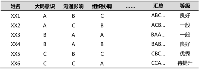 在能力維度,由被盤點對象的周邊人員或專業(yè)的人才測評師,通過定性或定量的方式進行評價,最終得到被盤點對象的能力等級。