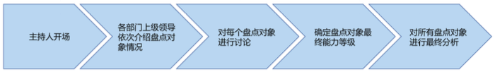 人才校準會的主要流程為由主持人引導這個過程,由直接上級對被盤點隊對象進行討論。