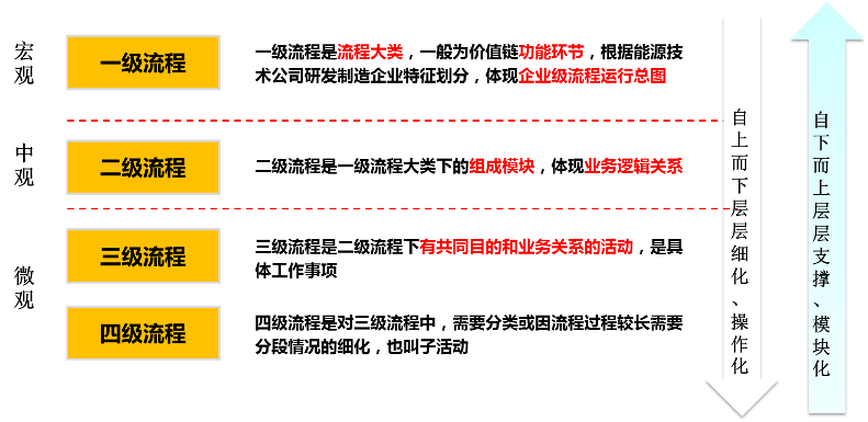 本次流程體系設(shè)計(jì)的工作內(nèi)容,包括組織架構(gòu)及組織運(yùn)作機(jī)制明確、會(huì)議決策流程專項(xiàng)設(shè)計(jì)、主業(yè)務(wù)流程設(shè)計(jì)(項(xiàng)目管理、市場與營銷、供應(yīng)鏈及生產(chǎn)、交付與工程管理、質(zhì)量管理、財(cái)務(wù)管理等)、流程管理及運(yùn)作機(jī)制設(shè)計(jì)四個(gè)層次,工作輸出包括職責(zé)、權(quán)限、流程框架、流程文件、工作表單、配套制度等多種形式。