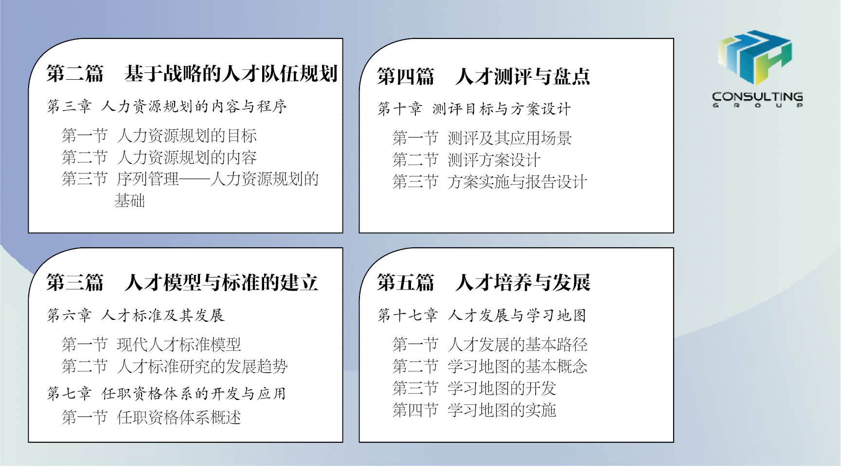 - 要清晰地告訴大家,人才測評與盤點(diǎn)的工具、方法有哪些,在招聘測試、競爭上崗、組織變革、梯隊(duì)建設(shè)、職業(yè)素養(yǎng)提升等訴求下,應(yīng)當(dāng)如何設(shè)計(jì)測評或盤點(diǎn)方案,獲得最優(yōu)性價(jià)比。