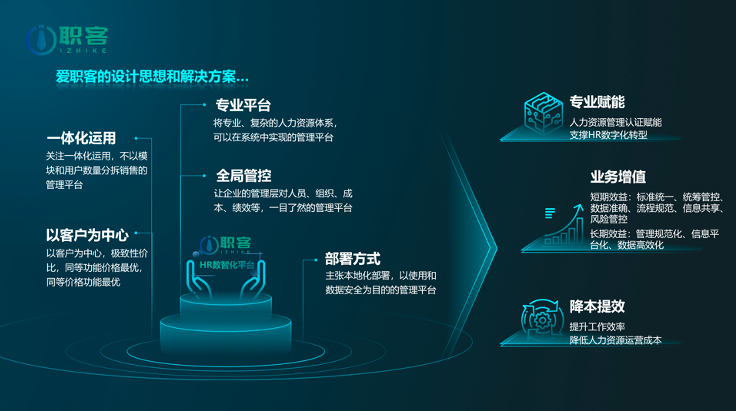 在系統(tǒng)推進實施的過程中,中科芯認識到:作為一家多地運營的準集團型公司,人力資源管理體系的落地,離不開數(shù)字化平臺的承載與支撐,因此,在人力資源系統(tǒng)設計的同時,公司即著手人力資源數(shù)字化平臺的選型工作,經(jīng)過反復比選國內(nèi)多家廠商和產(chǎn)品,最終選定漢哲數(shù)科“i職客”人才數(shù)字化平臺作為合作伙伴。