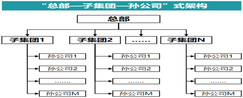 該組織架構(gòu)模式下,整個集團從母公司到下屬成員企業(yè)在法理架構(gòu)上形成母公司、子集團、孫公司三個層級;子集團作為專業(yè)化的業(yè)務(wù)模塊管理平臺,對下屬孫公司進行業(yè)務(wù)專業(yè)化管控,最終在集團整體管控運作上表現(xiàn)為母控子、子控孫。