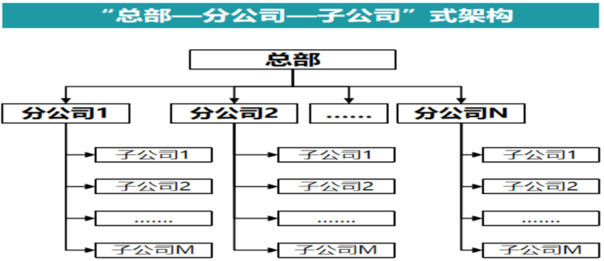 該組織架構(gòu)的總部和下屬成員企業(yè)以“母子公司”形式存在,均為獨立法人;在中間設(shè)置區(qū)域分公司,為非獨立法人,與總部形成“總分”架構(gòu);區(qū)域分公司作為區(qū)域內(nèi)成員公司一體化集中管理平臺,最終在集團整體管控運作上表現(xiàn)為總控分、分控子。