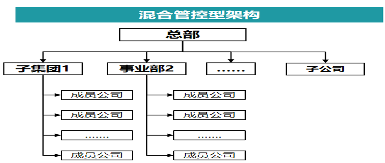 混合型管理架構(gòu)下,集團針對不同的業(yè)務(wù)模塊或業(yè)務(wù)區(qū)域形成了母子、總分等多種法人治理架構(gòu);同時由于不同的業(yè)務(wù)成熟度及專業(yè)化、一體化管控的需要,對不同的業(yè)務(wù)模塊分別采取了母子孫、母事子、總分子等多種架構(gòu),集團管控架構(gòu)總體上表現(xiàn)為混合式。