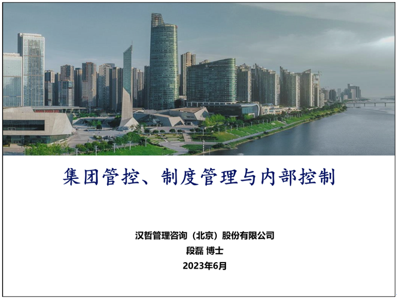 首先,全面介紹了集團(tuán)管控的概念、集團(tuán)管控常見模式,以及國企集團(tuán)管控中的常見問題;其次,對集團(tuán)管控、規(guī)章制度與內(nèi)控體系三者的關(guān)系進(jìn)行了全面的分析;在此基礎(chǔ)上,基于“集團(tuán)管控屋頂圖”理論,以案例的方式,系統(tǒng)介紹了集團(tuán)管控系統(tǒng)的建設(shè)程序;最后,對本次培訓(xùn)對象極為關(guān)注的“規(guī)章制度體系的評估、優(yōu)化、建設(shè)與升級“,進(jìn)行了詳細(xì)介紹。