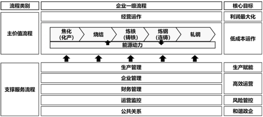 但其忽略了企業(yè)組織結(jié)構(gòu)的構(gòu)建,是一切流程的的始端,而流程是基于企業(yè)的業(yè)務(wù)流,是研究提高企業(yè)運(yùn)轉(zhuǎn)效率的基礎(chǔ)。企業(yè)面臨的未來競爭,是流程體系與流程體系的對抗。因此,通過流程設(shè)計(jì)企業(yè)的組織結(jié)構(gòu),才是最為科學(xué)合理的方法。本文試圖通過在鋼鐵企業(yè)組織結(jié)構(gòu)設(shè)計(jì)中的實(shí)踐,來闡述如何運(yùn)用流程的思維設(shè)計(jì)制造企業(yè)組織結(jié)構(gòu)。