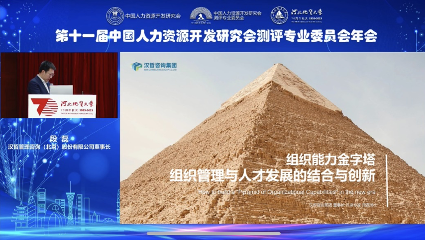 作為專(zhuān)委會(huì)常務(wù)理事,漢哲咨詢(xún)首席專(zhuān)家段磊博士受邀參加年會(huì)并于21日下午在大會(huì)發(fā)表了題為《組織能力金字塔-組織管理與人才發(fā)展的結(jié)合與創(chuàng)新》的主題發(fā)言,系統(tǒng)介紹了漢哲自主研發(fā)的“組織能力金字塔”模型及其應(yīng)用實(shí)踐,得到了與會(huì)專(zhuān)家的一致好評(píng)。10月22日,段磊博士參加了《人才發(fā)展現(xiàn)代化賦能高質(zhì)量發(fā)展》分論壇活動(dòng),并作為嘉賓為參加研討的各位報(bào)告人進(jìn)行了專(zhuān)業(yè)的點(diǎn)評(píng)。