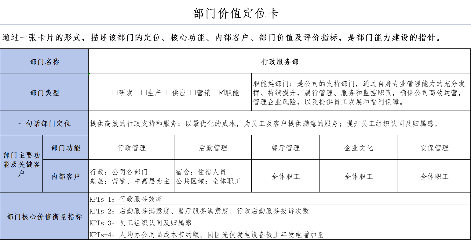 1、建立部門價值管理體系,重點是職能部門的價值定位和價值評價,解決職能部門有效評價的問題。