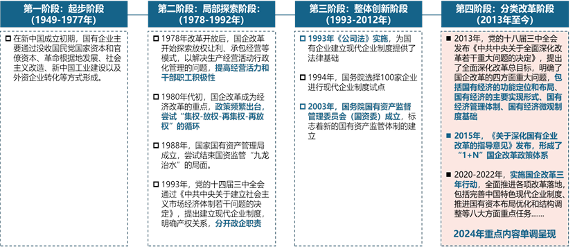國(guó)有企業(yè)改革發(fā)展歷程進(jìn)入2024年,標(biāo)志著新一輪的深化與提升,國(guó)有企業(yè)改革的行動(dòng)方案和重點(diǎn)工作部署如下: