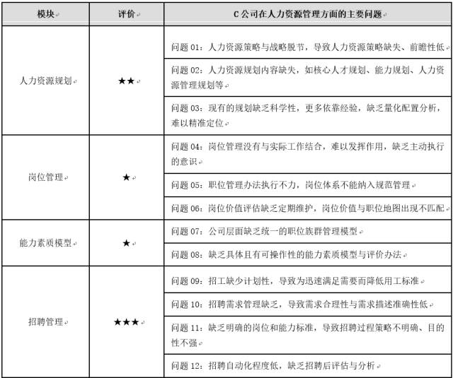 根源二:一個好的人力資源管理體系,首先要有“大腦”和“骨架”,而人力資源管理體系的“大腦”,就是企業(yè)的人力資源哲學(xué);人力資源管理體系的“骨架”,就是一個完整的人力資源管理規(guī)劃,這兩個關(guān)鍵解決了人力資源管理“為什么”和“如何到達(dá)”的問題,是“道”的層面的問題,而在這個問題上,C公司一直沒有清晰的思路;盡管多次導(dǎo)入了先進(jìn)的人力資源管理技術(shù),但都停留在局部和技術(shù)的層面,當(dāng)企業(yè)需要體系化的思維和統(tǒng)合綜效的時候,這一問題就凸現(xiàn)出來。