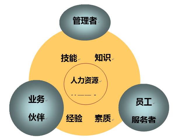 如圖所示,在HR/314 模型中,“3”是指人力資源經(jīng)理的三種角色,即:管理者、業(yè)務(wù)伙伴、員工服務(wù)者;“1”是指一個(gè)理念,即:人力資源管理理念;“4”是指四個(gè)勝任維度,即:技能、知識(shí)、經(jīng)驗(yàn)、素質(zhì)。