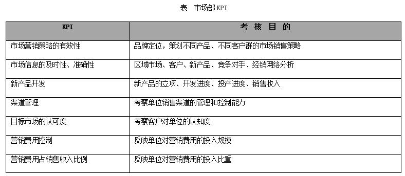 各部門(mén)的主管需要根據(jù)單位級(jí)的KPI建立部門(mén)級(jí)KPI,并對(duì)相應(yīng)部門(mén)的KPI進(jìn)行分解,確定相關(guān)的要素目標(biāo),分析績(jī)效驅(qū)動(dòng)因素(技術(shù)、組織、人),確定實(shí)現(xiàn)目標(biāo)的工作流程,分解出各部門(mén)級(jí)的KPI,以便確定評(píng)價(jià)指標(biāo)體系,如,根據(jù)單位級(jí)的“市場(chǎng)領(lǐng)先”戰(zhàn)略,確定部門(mén)級(jí)KPI。