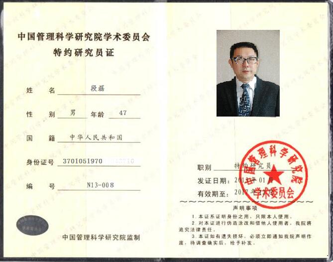 經有關部門推薦,鑒于漢哲咨詢總裁段磊博士在管理咨詢領域內的學術研究造詣,特聘請段磊博士任中國管理科學研究院特約研究員,參與管理科學相關領域的研究和成果評審工作。