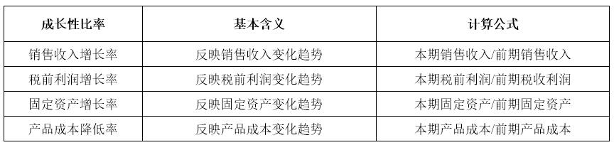 成長(zhǎng)性指標(biāo)分析的目的是觀察企業(yè)在一定時(shí)期內(nèi)的經(jīng)營能力的發(fā)展變化趨勢(shì),主要指標(biāo)如表4所示。企業(yè)即使收益性再好,如果成長(zhǎng)性不好,也就表明其發(fā)展后勁不足,未來盈利能力有可能較差,因此,分析企業(yè)的成長(zhǎng)性對(duì)戰(zhàn)略選擇至關(guān)重要。